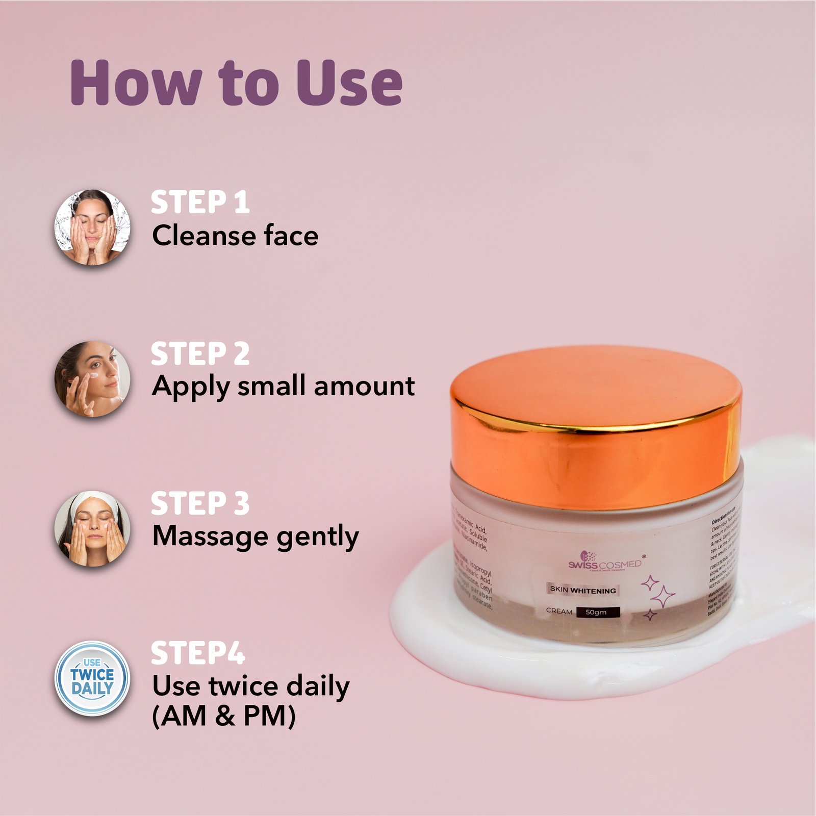 - Use twice daily: once in the morning and again at night.