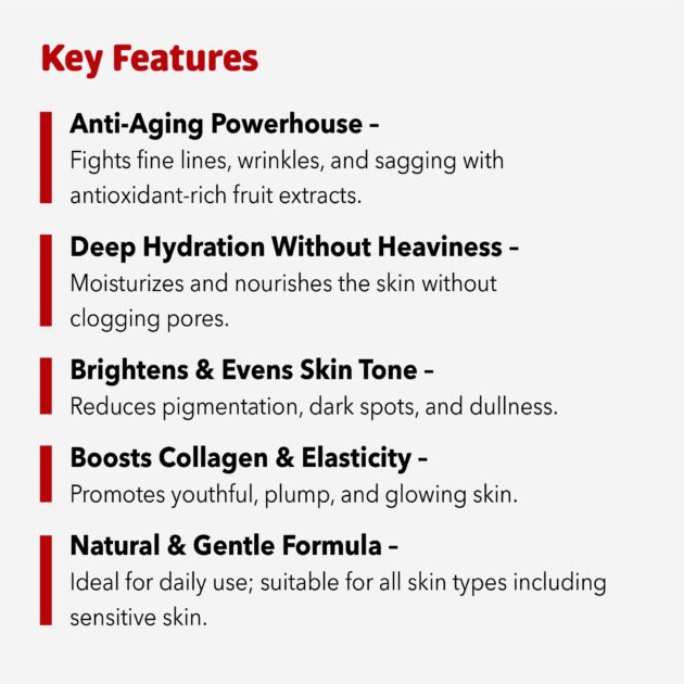 - Boosts Natural Glow: Rich fruit extracts enhance skin radiance.