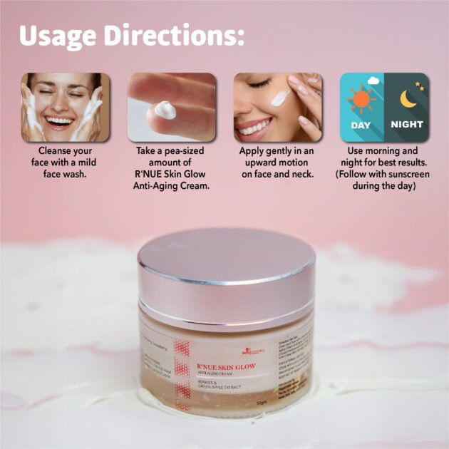 - Take a small amount of R’NUE Skin Glow Cream on your fingertips.